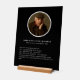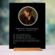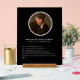 Classy funeral memorial display featuring a photo of your loved one, their name, birth and death date along with what ever personal information you want to display - college degrees, business, marriage, children, grand children, hobbies, etc.