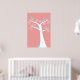 Fünf bezaubernde abstrakte blaue Vögel hängen in einem weißen Baum vor einem rosa Hintergrund auf einem Druck