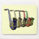 Fünf bunte Saxophone symbolisieren die Liebe des Instrumentes und die sanfte sanfte Saxmusik in Blues und Jazz und begleiten andere Genres Solo oder Gruppen. Fünf Saxophone in Blau, Gold, Schwarz, Rot und Grün mit goldenen Schlüsseln in einer Reihe angeordnet. Vollständig anpassbar und einfach zu personalisieren. Ändern Sie die Hintergrundfarbe und fügen Sie Ihre eigene Textnachricht in verschiedenen Schriftart und Farben hinzu.