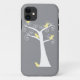 Fünf bezaubernde abstrakte Gelbvögel hängen in einem weißen Baum vor grauem Hintergrund auf einem iPhone-Gehäuse