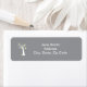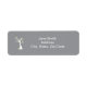 Fünf bezaubernde, abstrakt gelbe Vögel hängen in einem weißen Baum vor grauem Hintergrund auf einem Etikett