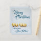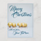Fünf goldene Weihnachtsbälle - blaues Schreiben Feiertagspostkarte