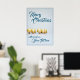 Fünf goldene Weihnachtsbälle - blaues Schreiben Poster