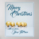 Fünf goldene Weihnachtsbälle - blaues Schreiben Poster