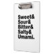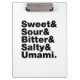 Fünf Grundgeschmacksrichtungen Klemmbrett