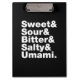 Fünf Grundgeschmacksrichtungen Klemmbrett