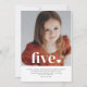 Eine einfache 5. Geburtstagseinladung mit Ihrem eigenen Foto und den Worten "fünf" über der Spitze, zusammen mit einem Herz. Sie können den gesamten Text und die Farbe des Textes und des Herzens bearbeiten.