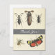 Die Vorderseite dieses Vintagen Stils danke Ihnen Postcard Design enthält die wertvolle Nachricht "Danke!" in Schrift wie Text, zusammen mit einer Darstellung von fünf Insekten. Die Rückseite weist eine personalisierte Dankesbotschaft auf. Eine Postkarte wie diese könnte benutzt werden, um Dankbarkeit für etwas Besonderes auszudrücken, das jemand getan hat.