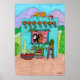 Fünf Katzen in einem Aqua Adobe House Poster