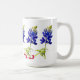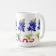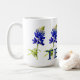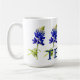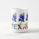 Einzigartiges Design der Tasse mit den Bluebonnet-Blume von Texas vor einem weißen Hintergrund, mit Texas bedruckt ganz unten. Die Bluebonnet-Blume ist die Staat-Blume von Texas. Im März und April blühen diese wunderschönen Blume auf den Feldern und in den Autobahnen.