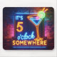 Fünf Uhr irgendwo, wo Neon auf Stein unterschreibt Mousepad