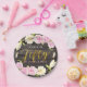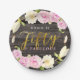 Papierplatte des eleganten Geburtstags-Party für die Dame, die 50 dreht! Handgemalter Watercolor mit Blumen (von der Magnolie und von der Kamelie) in rosa und in Sahne um die Karte mit Imitatgoldtext, der sagt "fünfzig u. fabelhaft." Der Hintergrund ist eine hölzerne Beschaffenheit. Fertigen Sie dieses Produkt besonders an, indem Sie Ihren Namen addieren.