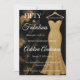 Fünfzig und fantastisch Skript minimal schwarze, goldene, weiße, marmorne, glitzernde moderne 50. Geburtstagseinladung, die Sie personalisieren und für Ihre fünfzigste Geburtstagsfeier versenden können. Die Worte "Fünfzig und fantastisch" sind vor einem klassischen schwarzen und goldenen Marmorhintergrund gesetzt, mit beliebter weißer Skript-Schrift-Typografie, neben einem eleganten, raffinierten goldenen glitzernden trägerlosen Abendkleid. Viel Spaß beim Anpassen des Namens, des Datums und der Uhrzeit, des Ortes und der RSVP mit dem Bearbeitungstool.