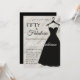 Ein Fifty and Fabulous Schriftzug auf minimalistische schwarzer und weißer Marmor-Optik, moderne Einladung zum 50. Geburtstag, die Sie personalisieren und für Ihre Geburtstagsfeier verschicken können. Die Worte "Fifty and Fabulous" sind auf einem edlen weißen und schwarzen Marmorhintergrund gesetzt, mit beliebter schwarzer und weißer Schriftart-Typografie, neben einem eleganten, raffinierten, stilvollen, vintage-schwarzen, trägerlosen Abendkleid platziert. Viel Spaß beim Anpassen des Namens, des Datums und der Uhrzeit, des Ortes und der RSVP mit dem Bearbeitungstool.