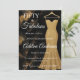Fünfzig und fantastisch Skript minimale schwarze, goldene, weiße, marmorne, glitzernde moderne 50. Geburtstagseinladung, die Sie personalisieren und für Ihre fünfzigste Geburtstagsfeier versenden können. Die Worte "Fifty and Fabulous" sind vor einem klassischen schwarzen und goldenen Marmorhintergrund gesetzt, mit beliebter weißer Skript-Schrift-Typografie, neben einem eleganten, raffinierten goldenen glitzernden trägerlosen Abendkleid. Viel Spaß beim Anpassen des Namens, des Datums und der Uhrzeit, des Ortes und der RSVP mit dem Bearbeitungstool.