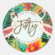 Fünfzigjähriger Tropenflamingo-Aufkleber Runder Aufkleber