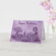 Pilze wachsen auf einer Wiese zusammen. Handgezeichnetes Design in lila Tinte. An der Vorderseite steht "Happy Birthday" und innen steht "Habe einen wunderbaren Geburtstag!"