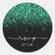 Ein Imitat, das den ozeanblauen Glitzer glänzt, grenzt an eine schwarze Hintergrundfarbe. Sie können die Farbe des fließenden Kalligraphie-Schriftartes "uAwg" digitale Vektorgrafik ändern. Der moderne Stil des Schriftartes ist für ihren Namen vollkommen anpassbar. Girly Glam aquamarin, grün, smaragdgrün, jade und schwarz uAwg wedding Umschlag Aufkleber klassische Rundaufkleber. Die glitzernde Glam wird mit einem grafischen Effekt erstellt, der flach wie ein Foto gedruckt wird.