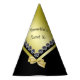 Schöne Geburtstags-Party-Papierhüte während irgendeines Alters für Frauen und Geburtstags-Partys des Mädchens. Dieser moderne, hoch entwickelte und sehr elegante Entwurf hat ein Schwarzes und einen Goldumschlagartentwurf, die mit funkelnd schillernden Diamanten mit einem Goldspitzebogen, mit Ihren Ereignisdetails verziert werden. Aller Text ist völlig kundengerecht, Ihre Bedingungen zu erfüllen, wenn Sie irgendeine Hilfe benötigen, wenn Sie Ihr Produkt besonders anfertigen, in Verbindung treten mit mir bitte durch meinen Speicher und ich glücklich bin, Ihnen zu helfen. Ich habe auch das Zusammenbringen einlade und andere zusammenpassende Partyzusätze in diesem Entwurf in meinem Speicher. Bogen- und Bandbilder gekauft von Digital-Entwurf-durchelena.