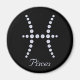 Funkelnd Glam-Design verfügt über das zodiakische / astrologische Symbol für Pisces in Diamantrhinestones auf schwarzem Hintergrund mit Skripttext