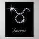Der funkelnd Glam Poster-Druck enthält das zodiakische / astrologische Symbol für Taurus in Diamantrhinestones auf schwarzem Hintergrund. Taurus wird den geborenen von 21. April bis 20. Mai zugewiesen