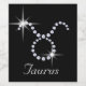 Das funkelnd Glam-Weinflaschenlabel ist mit dem Tierkreiszeichen / Astrologie für Taurus in den Diamantrhinestonen auf schwarzem Hintergrund gekennzeichnet. Taurus wird den geborenen von 21. April bis 20. Mai zugewiesen