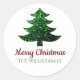 Funkelnd froher Weihnachtsbaum grün Familienname Classic Round Sticker. Custom Gift Wrapping versorgt funkelnd Weihnachtsbaum mit grünen Glitzern und Typografie Frohe Weihnachten. Foto der Glitzern, nicht der eigentliche Glitzer.