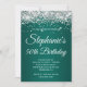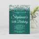Schaffen Sie sich Ihre eigene stilvolle Meilenstein-Geburtstagsfeier-Einladung für sie. Dekorative Imitate funkelnd Glitzer-Grafik auf Weiß und Silber. Die digitale Hintergrundkunst zeichnet sich durch einen dunkeltürkisfarbenen Farbverlauf aus. Passen Sie die einladenden Schriftart-Farben oder -Stile an. Die luxuriösen Glitzern, Glanz und Glitzer werden mit künstlerischen Elementen geschaffen, die wie ein Foto gedruckt werden. Ein toller 50. Geburtstag lädt zu Ihrem besten Freund ein.