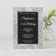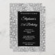 Schaffen Sie sich Ihre extravagante, stilvolle Meilenstein 12x18 Geburtstagsfeier für sie. Dekorative Imitate silberfarbene Oblonfolie mit silberfarbenem funkelnd Glitzer und abstraktem Leopardenfleck auf der Tierhaut. Ein schwarzes Rechteck mit silbergrauer, gebürsteter Metallfolie umschließt Ihre einladenden Informationen. Passen Sie die Stile, die Farbe und die Größe des weißen Schriftartes an. Die luxuriöse moderne Folie und das glitschige Aussehen werden mit digitalen Kunstelementen erstellt, die wie ein Foto gedruckt werden. Herrliche, mädchenhafte Safari zum Geburtstag laden Ihre Tochter ein.