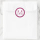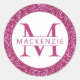 Tief-Himbeere oder Magenta-Rosa-Aufkleber für Personalisierte Umschlag Aufkleber mit einem Monogramm-Initial- und benutzerdefinierten Drucknamen in der Mitte eines rosa Glitzer und eines weißen Kreises. Das Design koordiniert mit dem Hot-Pink-Glitzer von Paper Grape Zazzle Designer Birthday und der Mitzvah Invitation Suite.