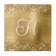 Imitate funkelnd Gold Glitzer mit einem goldgelb gebürsteten Metallfolie Digital Art Grafik Bild auf einer Keramik Kachel. Das Monogramm zeichnet sich durch einen hübschen, lockig kalligraphischen Schriftstil aus. Sie können ihren Vornamen über die Oberseite für ein personalisiertes Monogramm Textdesign hinzufügen. Alle funkelnd und glänzenden Elemente dieses modernen, mädchenhaften Designs drucken wie ein Foto. Ein wertvolles Geschenk für ihre süße 16, Quinceanera, oder einen weiteren Meilenstein Geburtstag. Der moderne, mädchenhafte Stil wäre ein nettes Dankeschön für eine Brautjungfrau oder ein anderes Mitglied Ihrer Hochzeitsfeier.