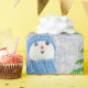 Handgenähter Schneemann aus weißer Socke, gefüllt mit Korn, Krocketblut und Schal und geklebter Augen, schwarzer Plastik und geklebte Nase aus roter Perle mit goldener Grenze, grüner Baum und goldener funkelnd Sterne auf abstraktem Silberpapier auf Verpackungspapier. Du musst wissen, dass du ein Foto bekommst!