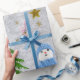 Funkelnd Goldsterne, Schneemann und Grünbäume Geschenkpapier