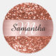 Erstellen Sie Ihren eigenen klassischen Rundaufkleber mit Imitaten funkelnd Kupfer Konfetti chunky Stil Glitzer gepaart mit Imitaten schimmernde pinkfarbige Rose Gold gebürstete metallische Folie Streifen für das Monogramm. Das Schwarz-Weiß-Monogramm und der Vorname verfügen über ein modernes Kalligraphieskript, das individuell angepasst werden kann. Bestimmte Briefe müssen mit dieser schönen Kalligraphie in die Mitte verschoben werden. Die luxuriösen Imitate-Folie schimmer Band und Glitzer sind digital erstellte Bilder, die wie ein Foto drucken.