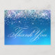 Ein Imitat funkelnd bunte Glitzer Band über die Oberseite einer aqua blauen Ozean ombre Imitate Folie. Sie können die Farbe der extravaganten altmodischen Schriftzeichen-Kalligraphie "danke"-Typografie ändern. Erstellen Sie Ihre eigene Feier dank Postkarten.