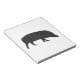 Dieses phantastische Notizblock verfügt über eine Silhouette eines Schweins, das mit funkelnd bunten Punkten bedeckt ist. Er hat seinen Kopf abwärts bereit, sich das Essen, das er finden kann, zu holen.