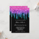 Eine hübsche Einladung für ihre fabelhafte 15. Quinera Geburtstagsfeier. Die Imitate funkelnd rosa, lila, blau, türkis und aquamarine mehrfarbige ombre Farbverlauf Glitzer und Folie Tropfen mit digitalen Kunstgrafiken gegen solide schwarz erstellt. Passen Sie den eleganten Stil, die Größe, den Abstand und die Farbe des Schriftartes je nach Bedarf an. Individuell gestaltbare Geburtstagsparty lädt ein. Girly Meerjungfrau Glam moderne schicke Glitterie Folie Tropfen Einladungen.