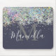 Trendy Girly Glitzern Rose Gold Glitzer Individuelle Name Monogram Blue Mouse Pad