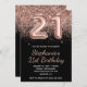 Funkelnd Rose Gold Glitzer Schwarze Nummer 21 Gebu Einladung