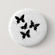 Vier schwarze Schmetterlinge mit Glitterhintergrund.