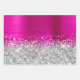 Glam-Art Packpapier Blatt für ihren Geburtstag. Die Kante zeigt Imitate silber Glitzer und Glitzern. Der Hintergrund ist eine fuchsienfarbene, rosa gebürstete Metallfolie, die wie ein Foto auf der Geschenkverpackung gedruckt wird.