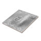 Imitate funkelnd silberner Glitzer mit einem silbergrauen, gebürsteten Metallfolie Digital Art Grafik Image auf einer Keramik Kachel. Das Monogramm zeichnet sich durch einen hübschen, lockig kalligraphischen Schriftstil aus. Sie können ihren Vornamen über die Oberseite für ein personalisiertes Monogramm Textdesign hinzufügen. Alle funkelnd und glänzenden Elemente dieses modernen, mädchenhaften Designs drucken wie ein Foto. Ein wertvolles Geschenk für ihre süße 16, Quinceanera, oder einen weiteren Meilenstein Geburtstag. Der moderne, mädchenhafte Stil wäre ein nettes Dankeschön für eine Brautjungfrau oder ein anderes Mitglied Ihrer Hochzeitsfeier. Die Färbung würde ein schönes Geschenk zum 25. Geburtstag von Silver Wedding machen.