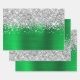 Glam-Stil Packung Papierblätter für die Ferien. Die Kante zeigt Imitate silber Glitzer und Glitzern. Der Hintergrund ist eine grüne, gebürstete Metallfolie, die als Digitalkunst gedruckt wird, wie ein Foto auf Ihrer Geschenkverpackung.