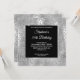 Schaffen Sie sich Ihre eigene extravagante und stilvolle Geburtstagsfeier für Sie. Dekorative Imitate funkelnd silberne Glitzer Leopardenmuster mit Folie Digital Art Grafik Hintergrund. Eine koordinierende quadratische silbergraue, gebürstete Metallfolie und ein schwarzes Overlay für Ihre einladenden Informationen. Passen Sie die Stile, die Farbe und die Größe des weißen Schriftartes an. Die luxuriöse, moderne Glitterfolie wird mit digitalen Kunstelementen erstellt, die wie ein Foto gedruckt werden. Fantastische Geburtstagsgärtnerin lädt zu Ihrem besten Freund ein.