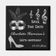 Eleganter, glamouröser 50. Geburtstag / 50. Geburtstag speichern Sie die Dattelmagnete. Trendy Glitz und Glamour Speichern Sie die Daten für Ihre 50 / 50 Geburtstagsfeiern. Schöne, blendende silberne Glitzern Diamanten Klingeltöne Notenbild, Silberglatter Stiletto High Heel Mode Schuhbild und eine schöne silber und schwarz Maskerade Maske mit schwarzen Federn, auf einem schicken schwarzen Hintergrund. Ein niedlicher, klassischer, modischer, stilvoller, hübscher Magnet für Frauen. Frauen werden dieses coole, lustige, funky, mädchenhafte Design für ihre glamouröse Musik und tanzen 50/50 Party Liebe.