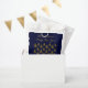 Personalisieren Sie den goldglänzenden Weihnachtsbaum auf blauem Hintergrund. Du musst wissen, dass du ein Foto bekommst!
