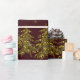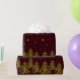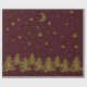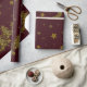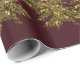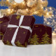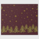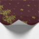 Golden funkelnder Weihnachtsbaum, Weihnachtsfichte, Mond, Sterne auf dunkelrot auf dem Packpapier. Du musst wissen, dass du ein Foto bekommst!
