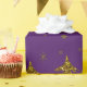 Funkelnd Weihnachtsbaum, Sterne, Schnee auf lila Geschenkpapier