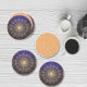 Die Kunst glitzernder Nachtschwärmer, die durch geometrische Kreise mit einer Mandalastimmung aufgereiht sind, die ruhig, fröhlich und aufregend ist. Die Kombination der zwei einfachen Kontrastfarben im Hintergrund, das Licht oben und das Dunkle im unteren Bereich, flankiert von Gelb, das diese beiden Farbmischungen ist, zeigt die Errungenschaft einer Stimmung von Melancholie bis Ruhe.