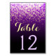 Lila Hochzeitslichter-Platzkarte mit weißer und blassgelber gelblicher Tischnummer, die auf lila Farbverlaufshintergrund strahlen. Diese moderne, elegante und stilvolle Hochzeitsveranstaltung ist Teil einer Hochzeitskollektion oder eines Set und ist für eine Hochzeitsfeier im Sommer oder im Winter perfekt anpassbar.